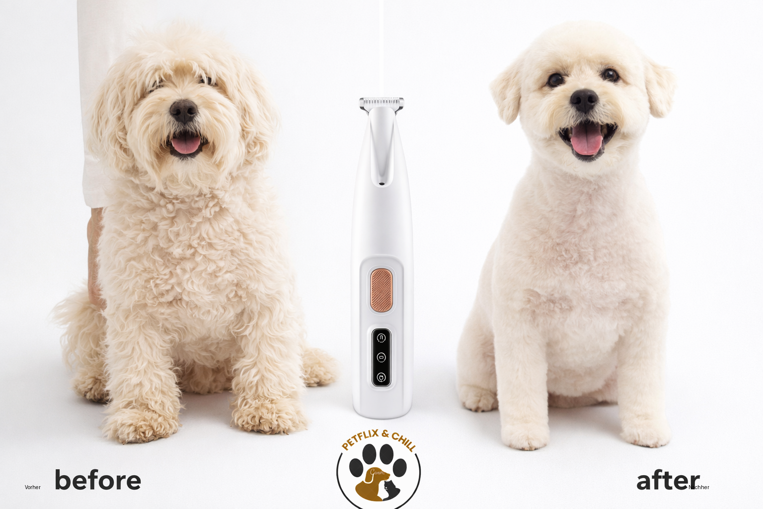 Ja, das Gerät wurde für beide Tierarten entwickelt und eignet sich besonders für Detailarbeiten an Pfoten, Gesicht, Ohren und empfindlichen Zonen.